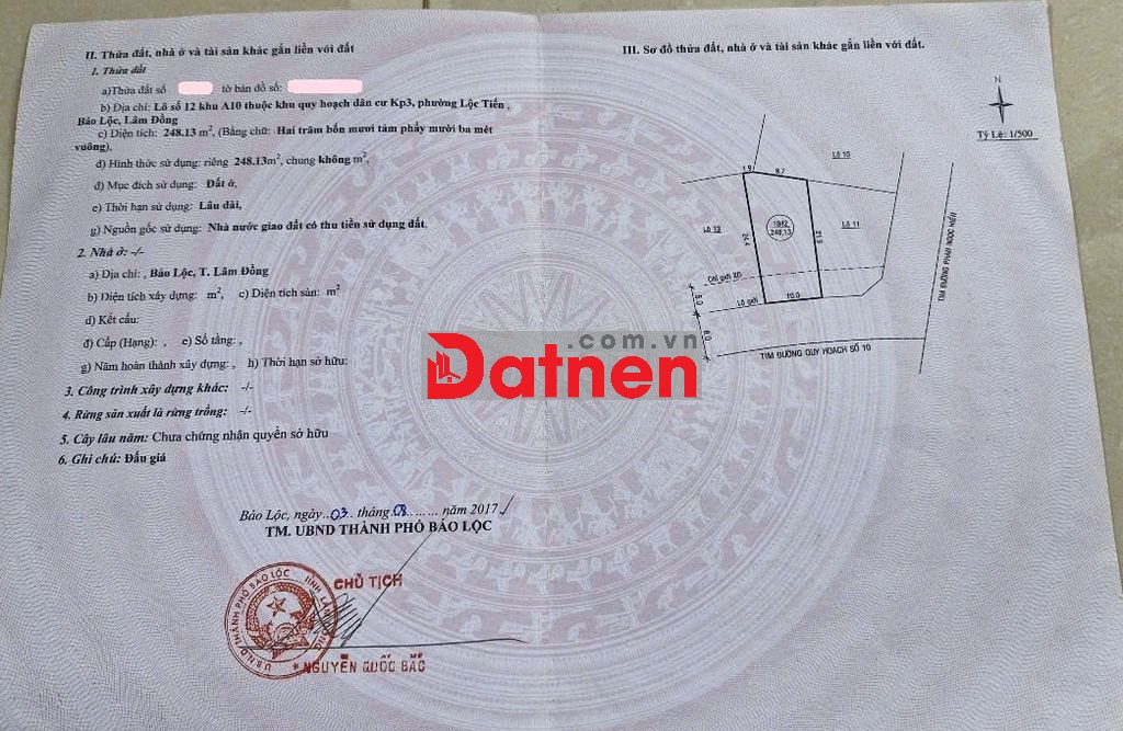Sở hữu lô đất diện tích lớn hiếm có trong khu dân cư quy hoạch bài bản tại phường Lộc Tiến – TP Bảo Lộc.