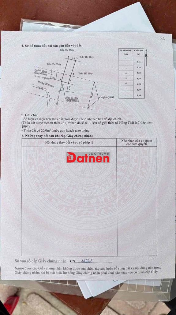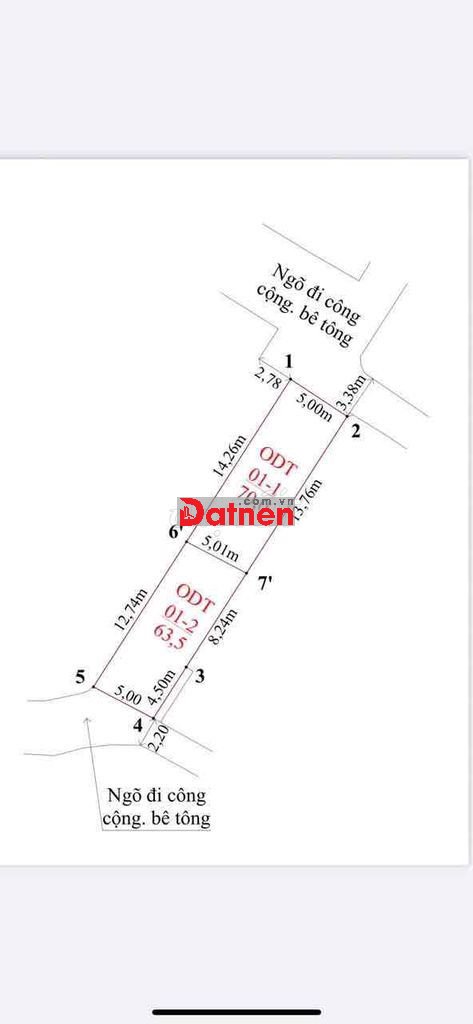 Ngang 5m dài 14m, ngõ bê tong 3,5m, cách trục thôn xóm chỉ 30m, sau một nhà mặt tiền đường. Ô tô vào tận nơi