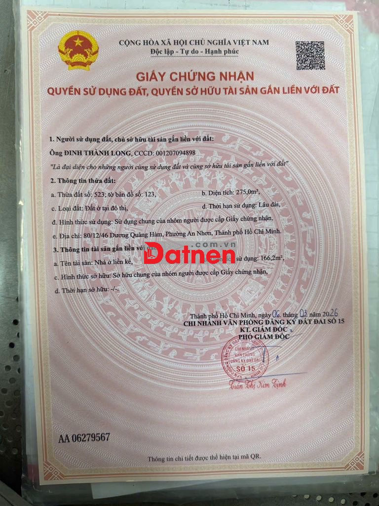 DIỆN TÍCH LỚN TRÊN 400M2, CÔNG NHẬN 275M2 ĐẤT Ở, PHÙ HỢP QUY HOẠCH 160M2