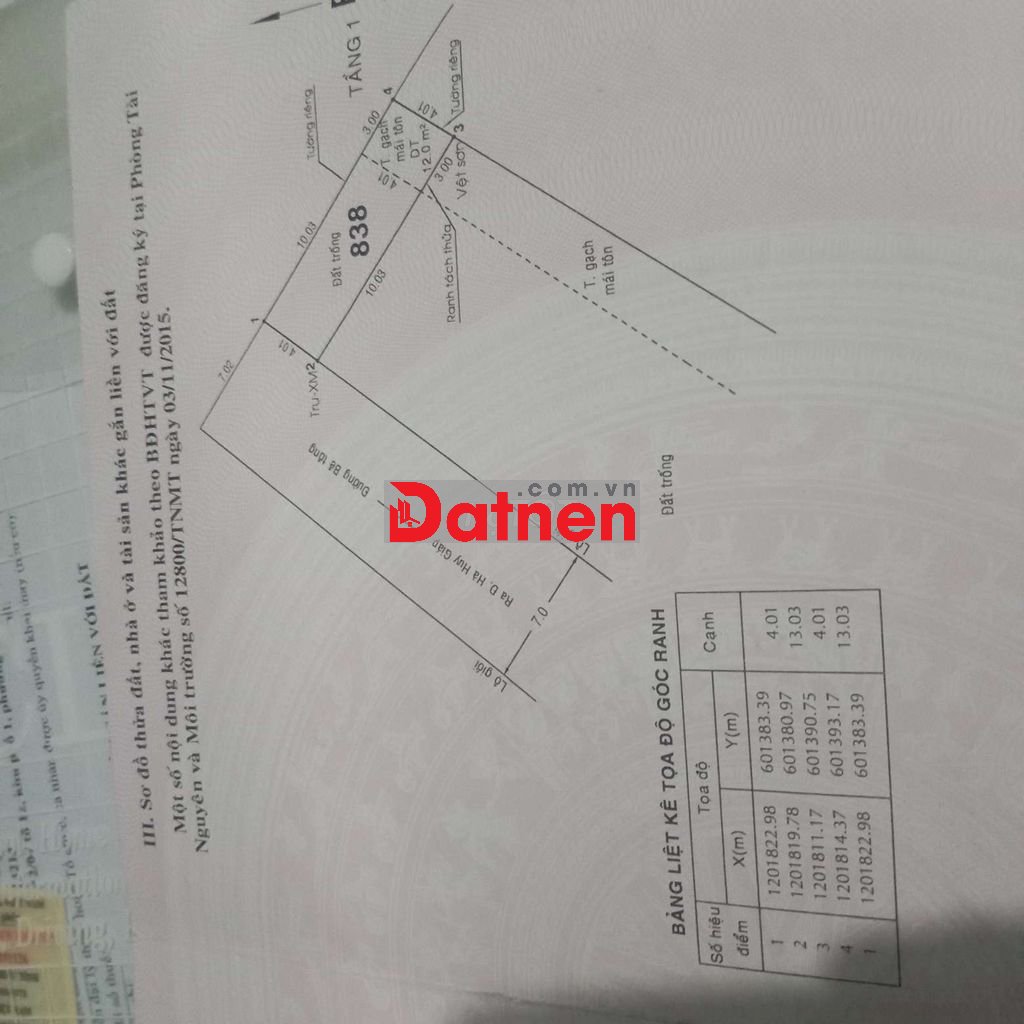 Đất thổ cư 100% ... 4.1 x 13m3 số hồng .hẻm . 7m . hướng Đông Bắc. gần đường Hà Huy giáp phường thạnh Lộc Quận 12. Thành phố Hồ Chí Minh. Gần gã 4 ga.Khu nhà đồng bộ dân trí về hưu ở. Vi trí đẹp thoáng mặt. Tiện cho người xây nhà mới ở.