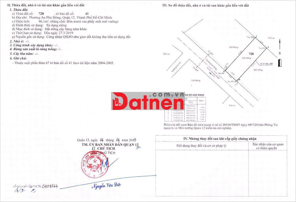 Đất gần C.cư An Phú Đông,4x11.5 sổ riêng,đường thông 5m,giá 3.7 tỷ