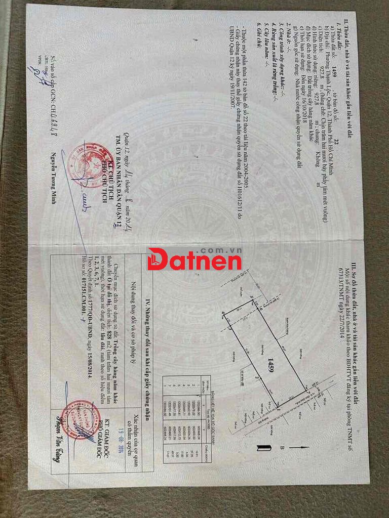 - Công nhận: 927m2 ( có 828m2 thổ cư)