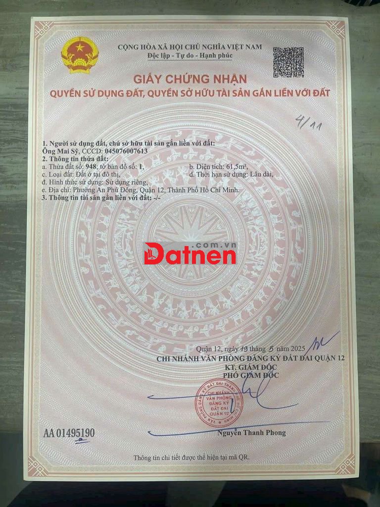 Quý vị đang xem nội dung tin rao "ĐẤT THẠNH LỘC 15,DT: 62m2, SỔ HỒNG RIÊNG, CHỈ 3.86 TỶ". Mọi thông tin, nội dung liên quan tới tin rao này là do người đăng tin đăng tải và chịu trách nhiệm. Phongtro.vn luôn cố gắng để các thông tin được hữu ích nhất cho quý vị tuy nhiên Phongtro.vn không đảm bảo và không chịu trách nhiệm về bất kỳ thông tin, nội dung nào liên quan tới tin rao này.