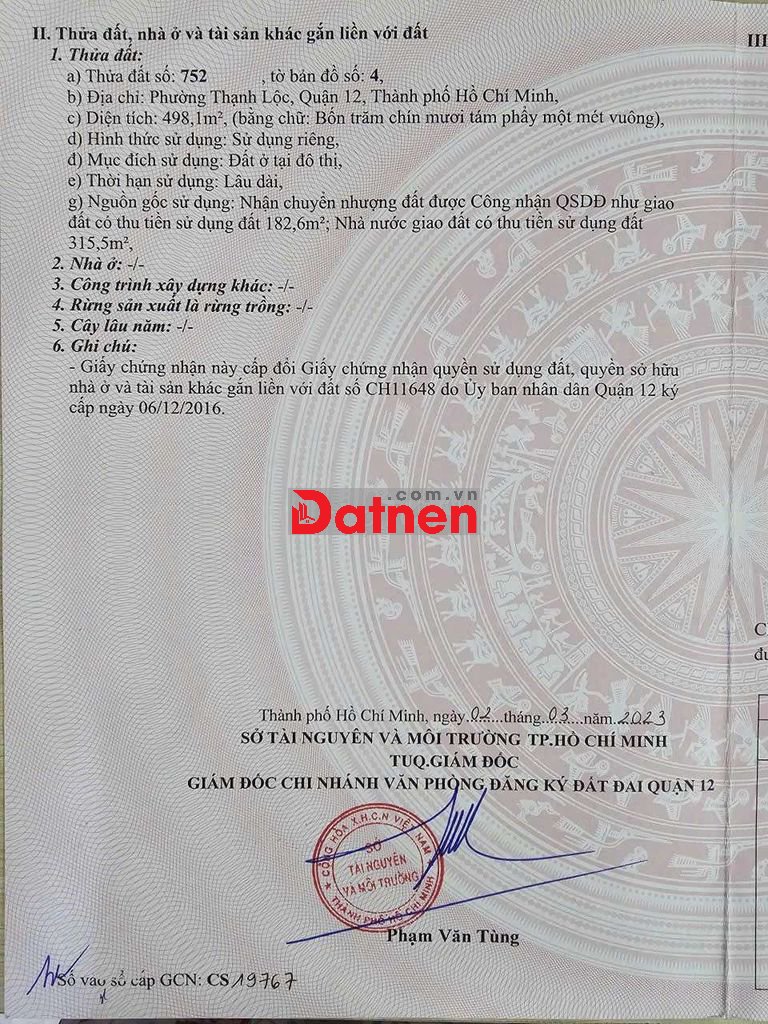 - DT 9.4m x 53m, công nhận 498m2