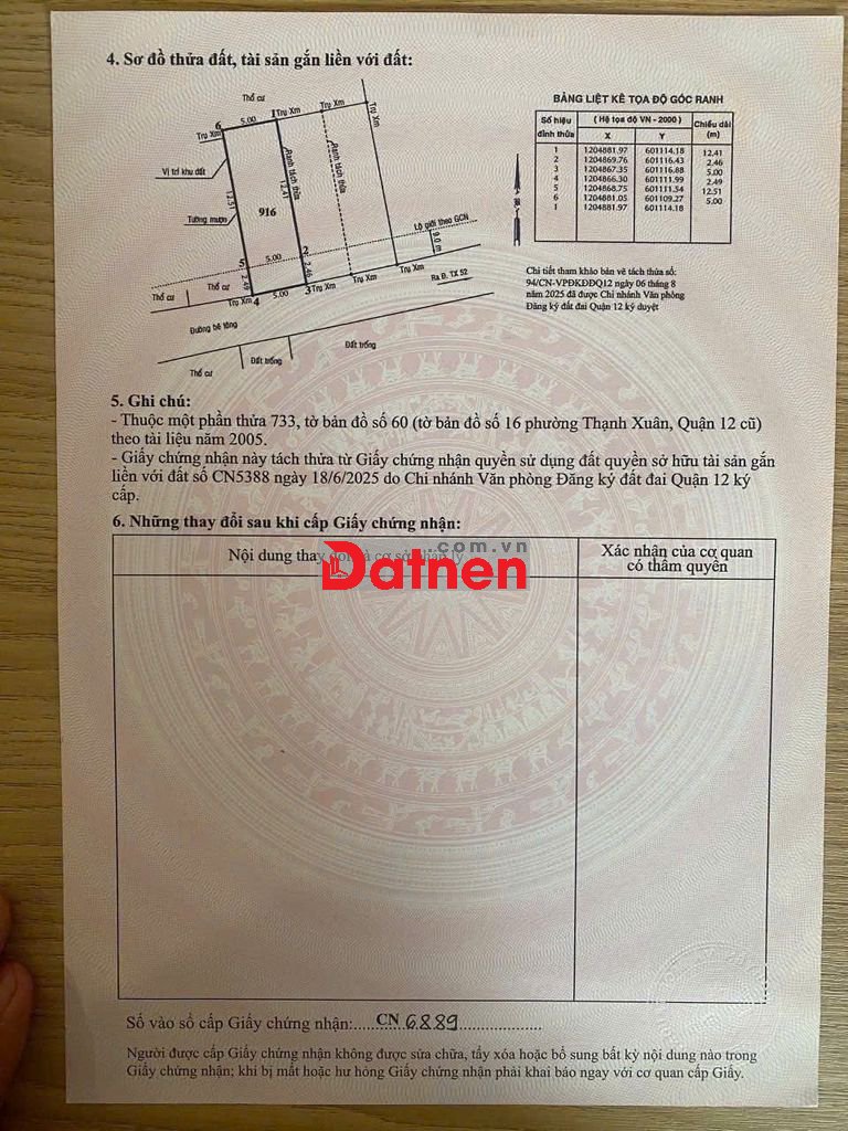 Chính chủ cần bán đất dt 5x15 , Tx52