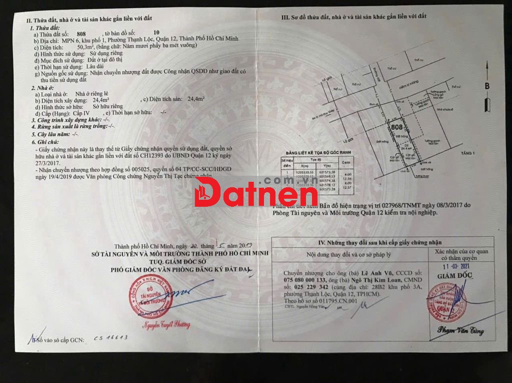 Chính chủ cần bán lô đất mặt tiền thạnh lộc 38, phường Thạnh Lộc, quận 12 (nay là phường An Phú Đông)