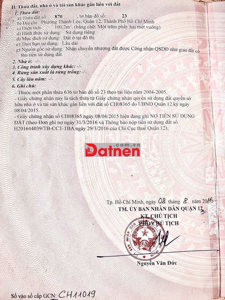 Đường Thanh Lộc 19 , Bán nhà xưởng kiên cố 8,5m x12 =100 m thổ cư . Tiện xây biệt thự hoặc cho thuê kho xưởng lâu dài