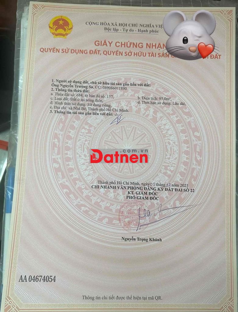 Đã chuyển 116m2 thổ cư.