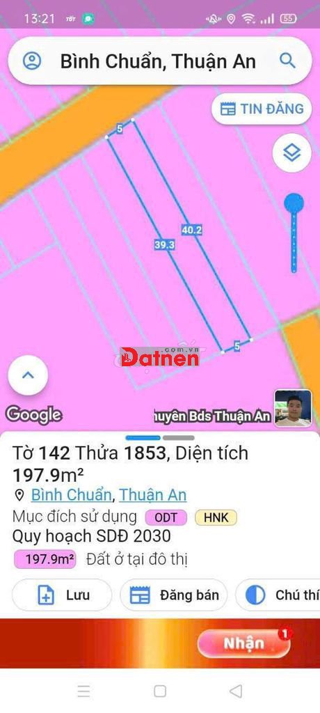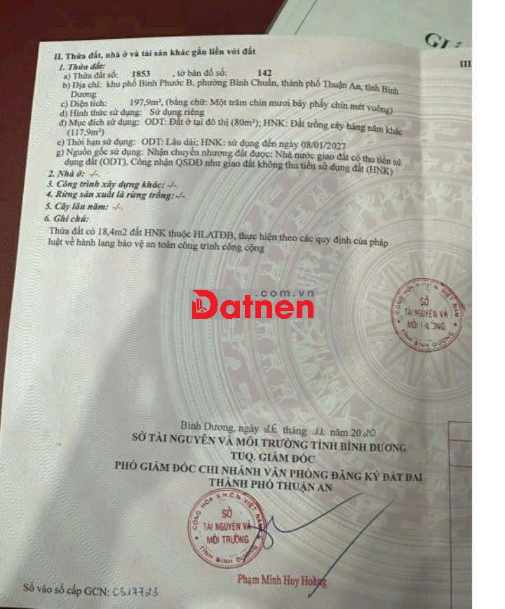 Bán đất trong Khu Căn Hộ Cao Cấp phường An Phú, Thuận An, Bình Dương cũ. D tích 200m² ( 5 x 40 ). Có 80m thổ cư. Sát bên toàn biệt thự. Giá thị trường đang bán 25 triệu/m². Em chỉ bán 13,3 triệu/m². Có hỗ trợ Bank 3 bên tẹt ga.. Sổ đang trong Bank.