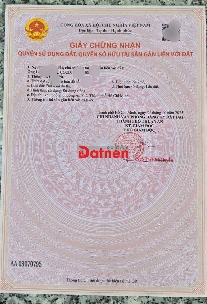 Đất 2,6 tỷ TL- 64,2m2 (ngang 3,9m)