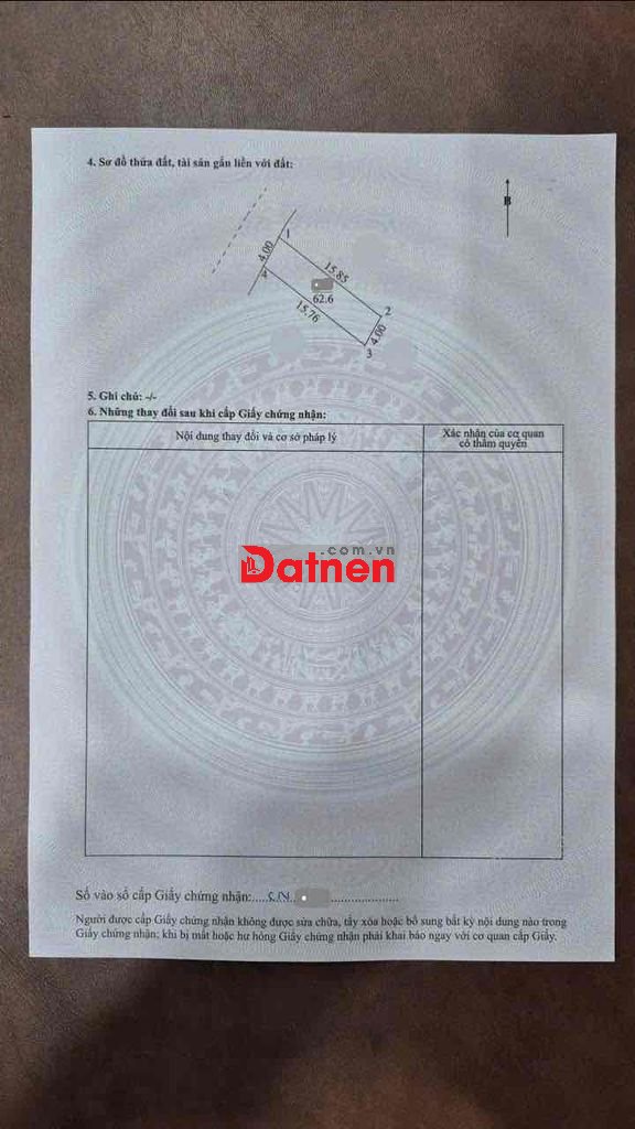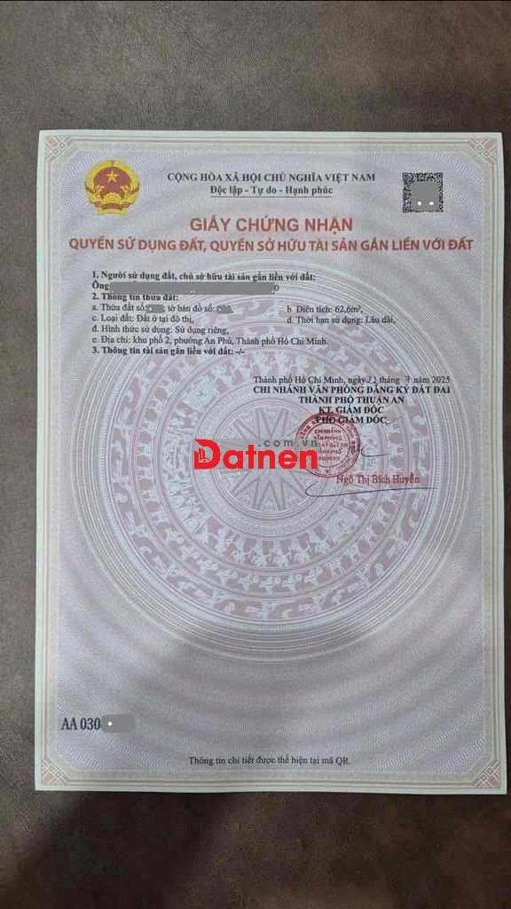 – Diện tích: 62,6m² thổ cư 100% (4x16m)
