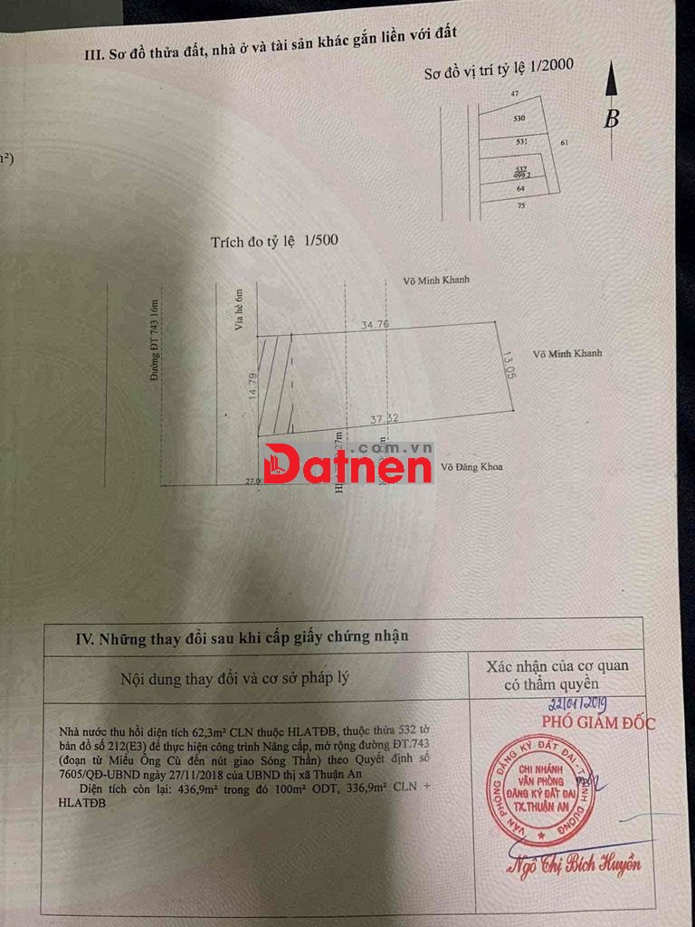 Bán đất mặt tiền đường DT743 có 100m thổ cư (sổ đỏ)