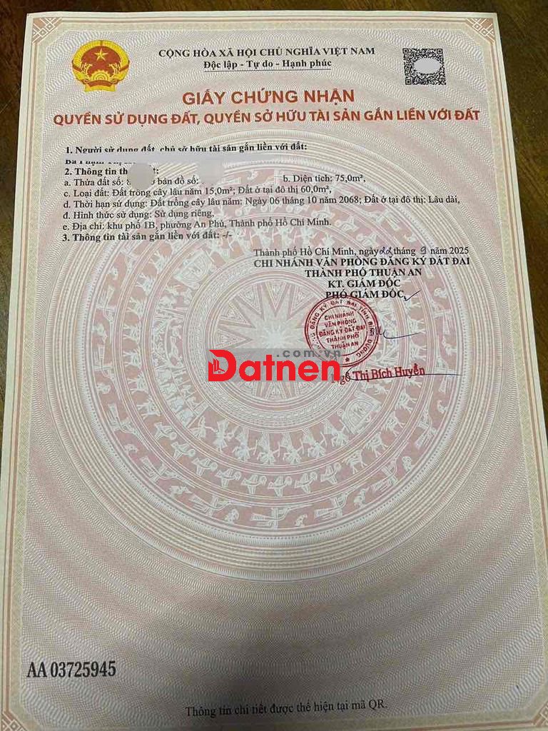 Vị trí: Đường Lê Thị Trung vào 200m, Kế bên trường học cấp 3 Lý Thái Tổ, gần chợ Bình Thuận 2, vòng xoay An Phú…Xung quanh đầy đủ tiện ích, đường xe oto, đi lại thuận tiện. Xây dựng tự do.