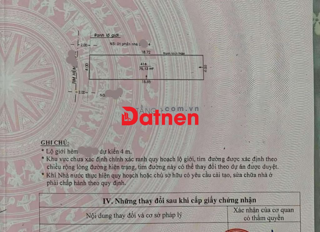 Ngang 4m x 19m. Công nhận đủ 75.1m2