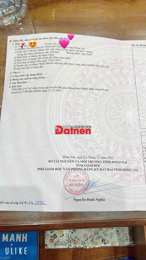 BÁN ĐẤT RẺ P. HOÁ AN BIÊN HOÀ GẦN Đ. HOÀNG MINH CHÁNH 506M2 2,2 TỶ