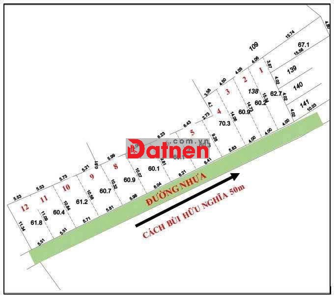 Lô 8: 60,9m² – thổ cư 100% (5 x 10m)