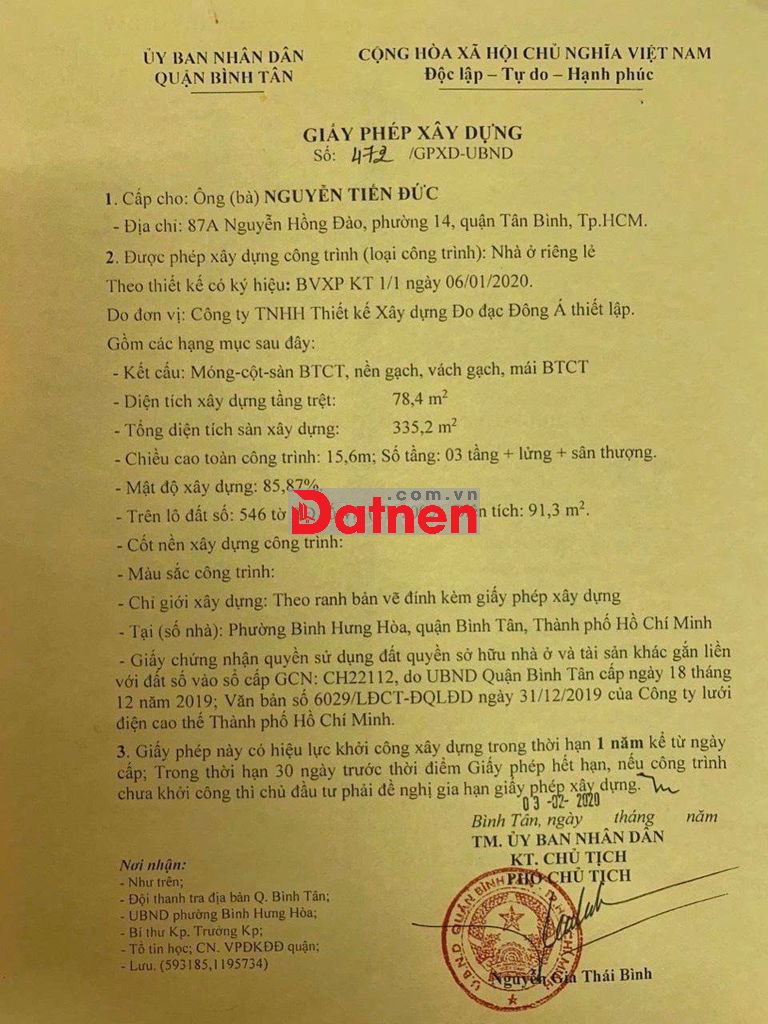 Quý vị đang xem nội dung tin rao "CHÍNH CHỦ BÁN ĐẤT Ở, HẼM 5M (XT) PHẠM ĐĂNG GIẢNG, P.BHH , Q.BT 4,3 TỶ". Mọi thông tin, nội dung liên quan tới tin rao này là do người đăng tin đăng tải và chịu trách nhiệm. Datnet.com.vn luôn cố gắng để các thông tin được hữu ích nhất cho quý vị tuy nhiên Datnet.com.vn không đảm bảo và không chịu trách nhiệm về bất kỳ thông tin, nội dung nào liên quan tới tin rao này.
