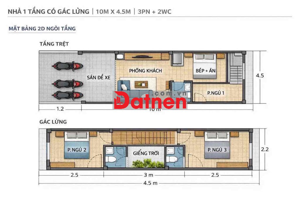 - Diện tích: 10,5x4,5m