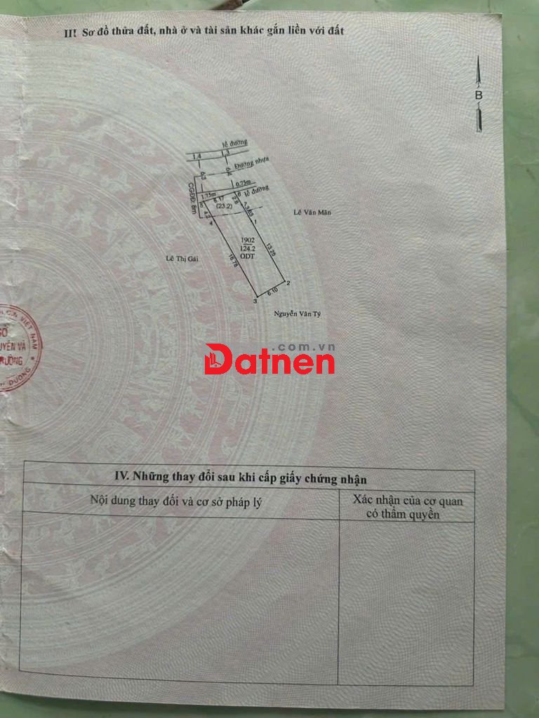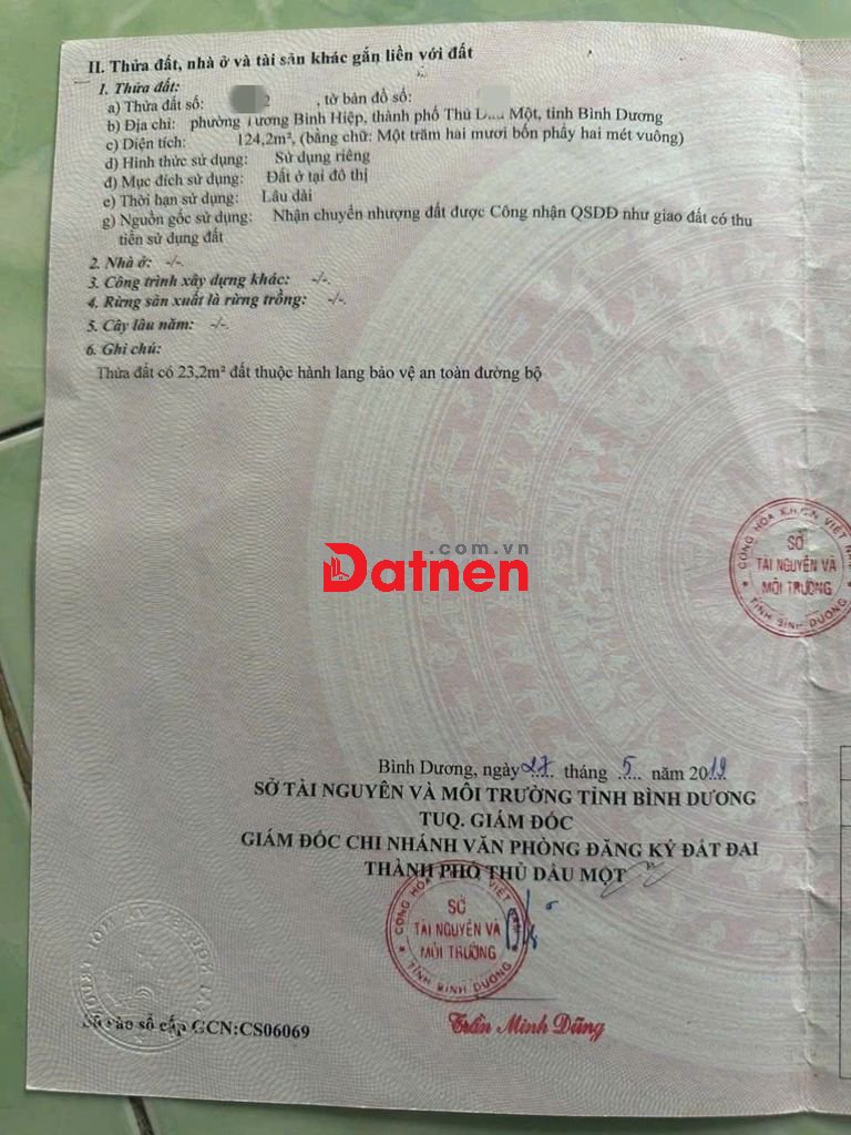 ĐẤT THỦ DẦU MỘT 124 m2 THỔ CƯ, SỔ RIÊNG