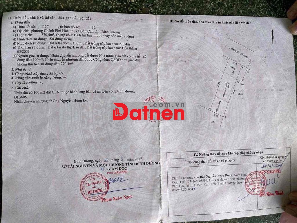 Dt : 10x37= 370m thổ cư 100m