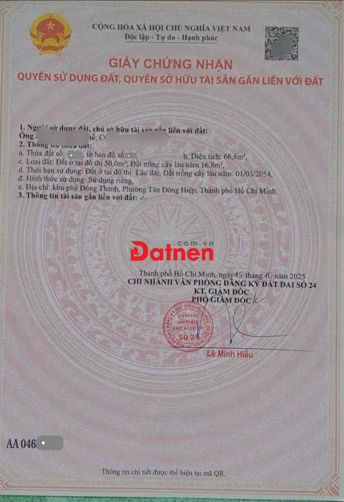📌 Diện tích: 66,8m² – thổ cư 50m²