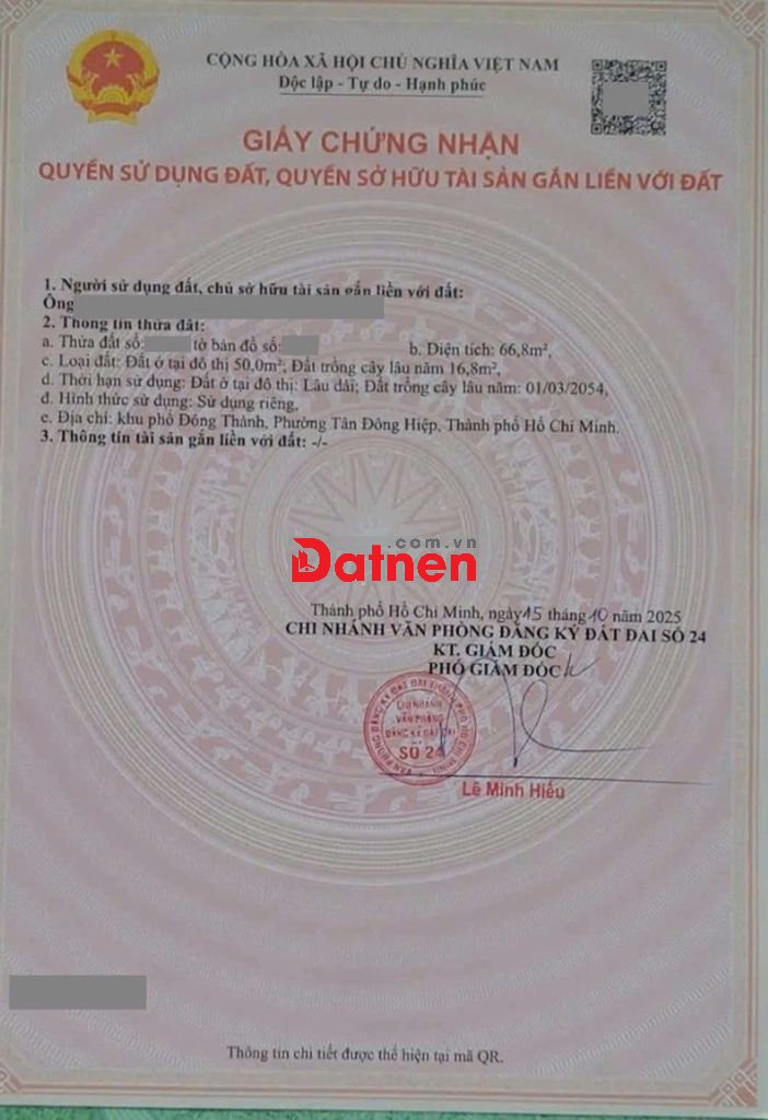 Thổ cư 50m2. Sổ hồng riêng.