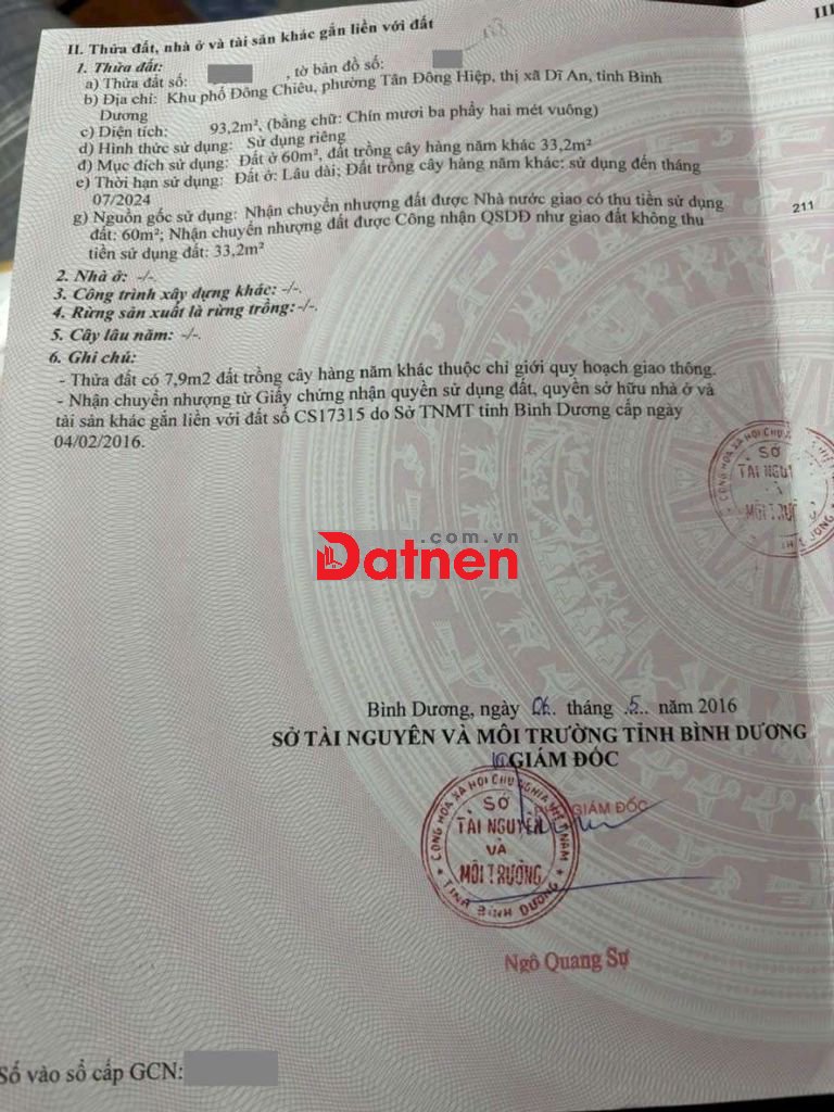 Đất 3.5 tỷ TL- 93.2m2 (ngang 4m).