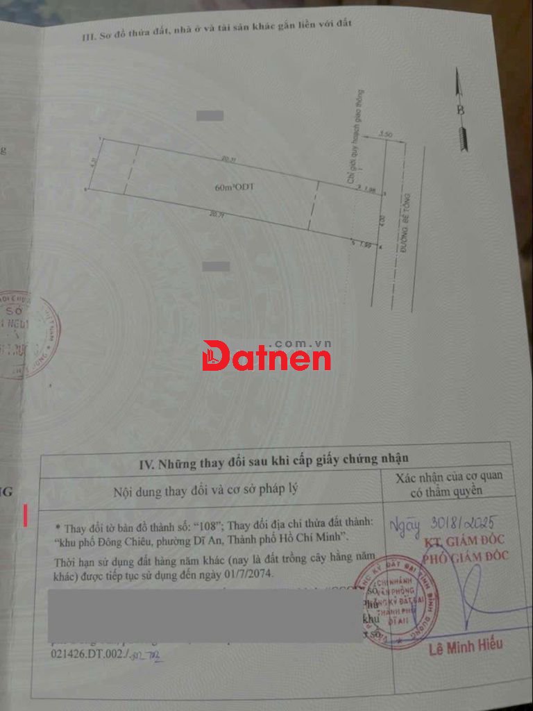 Đất gần ngã tư Chiêu Liêu, phường Tân Đông Hiệp, TP Dĩ An