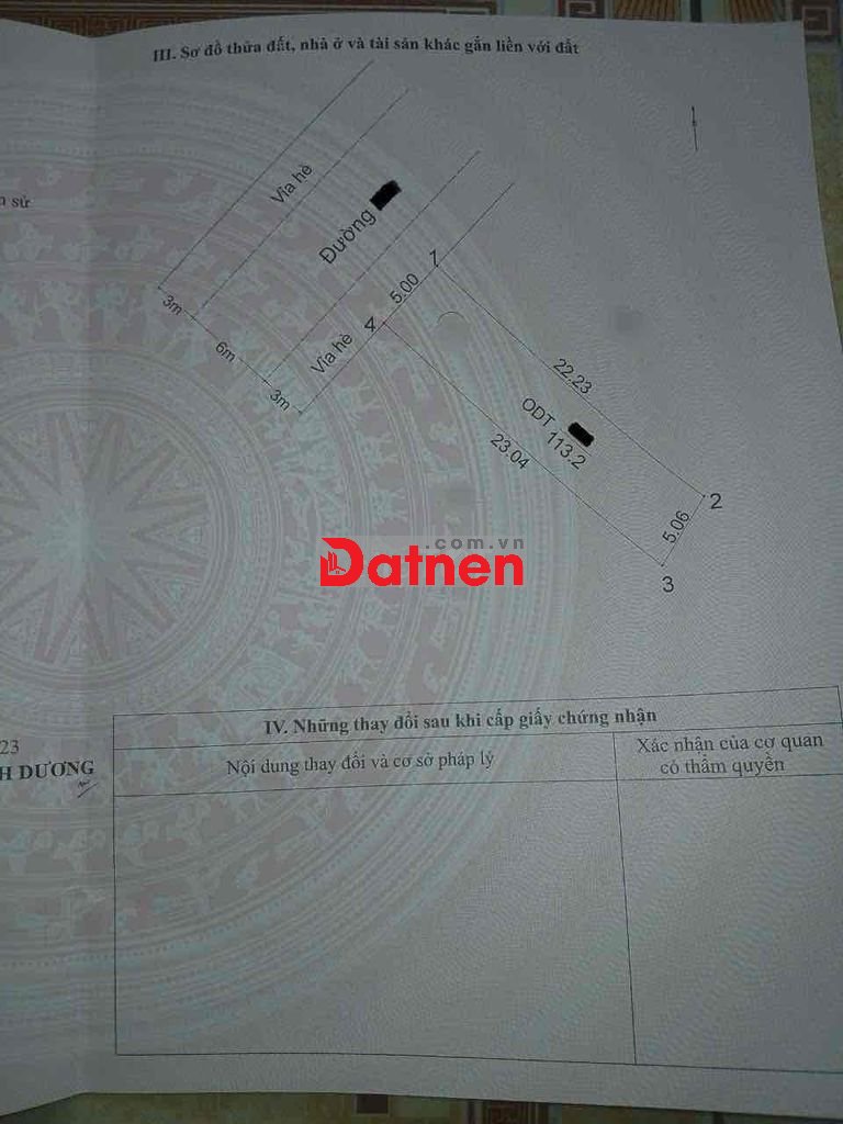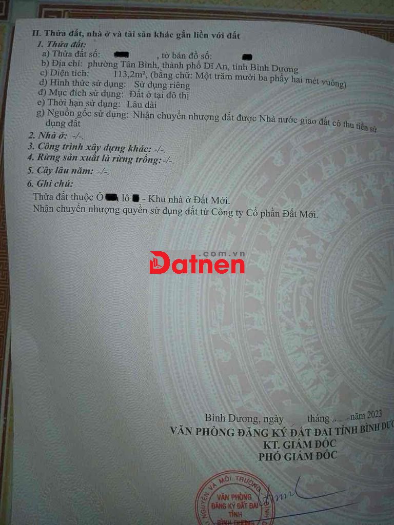 Đất 3,7 tỷ TL- 113.2m2 (ngang 5m).