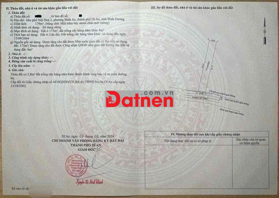 Đất gần ngã tư Bình Thung, P Bình An, TP Dĩ An.