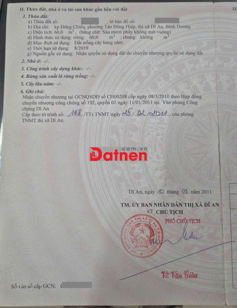 Đất kdc gần chợ Tân Long và ngã tư Chiêu Liêu, phường Tân Đông Hiệp, TP Dĩ An.