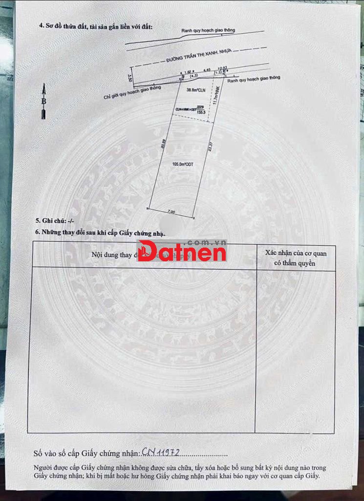 Thổ cư 105m2. Sổ hồng riêng.
