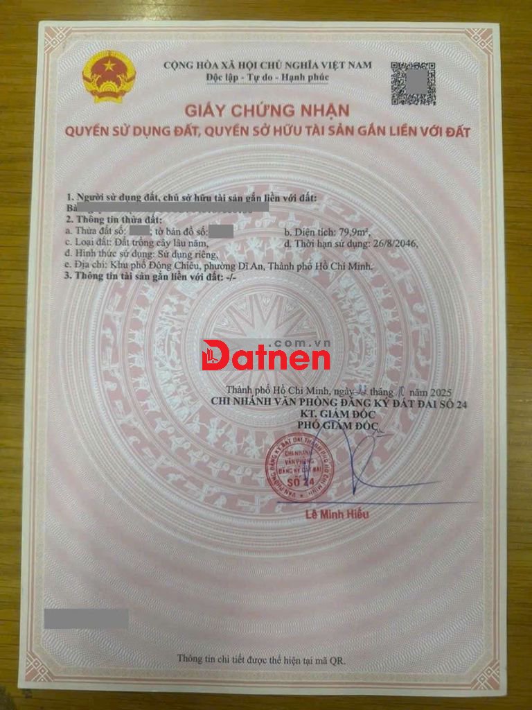Đất 80m gần ngã 3 Cây Điệp, phường Tân Đông Hiệp, TP Dĩ An