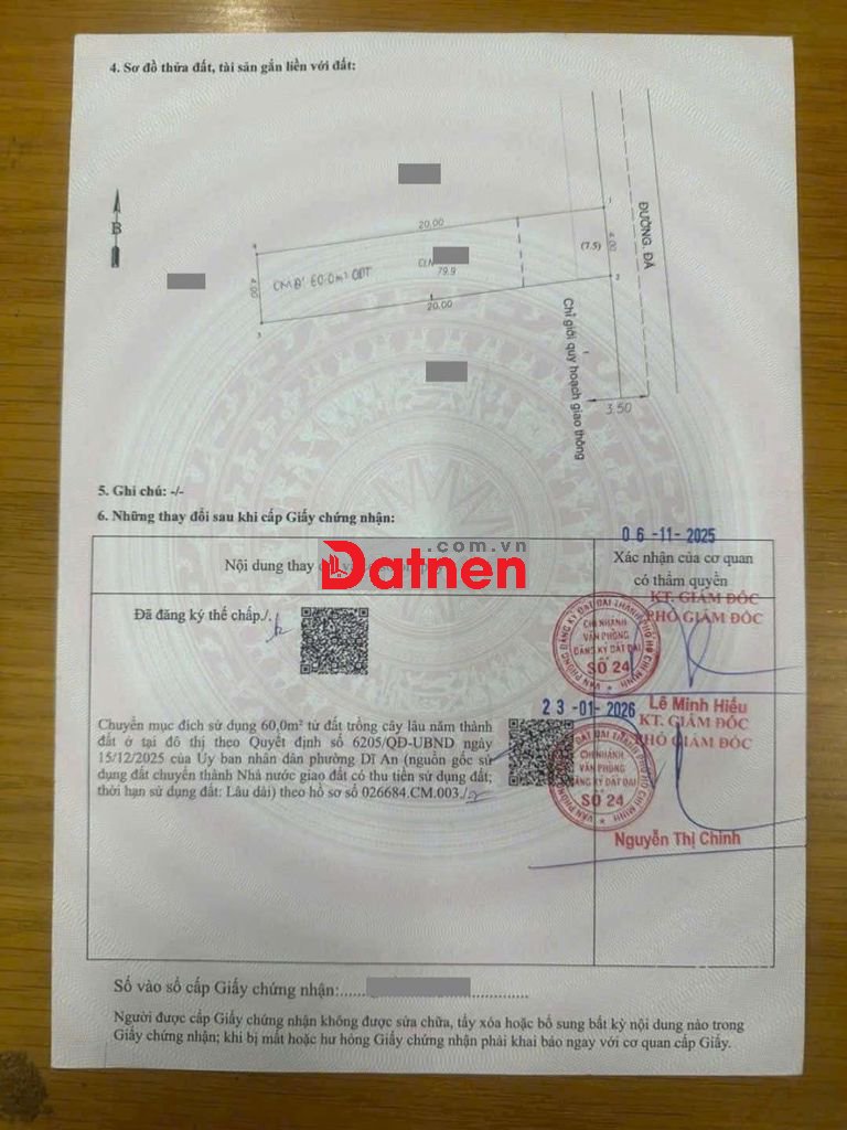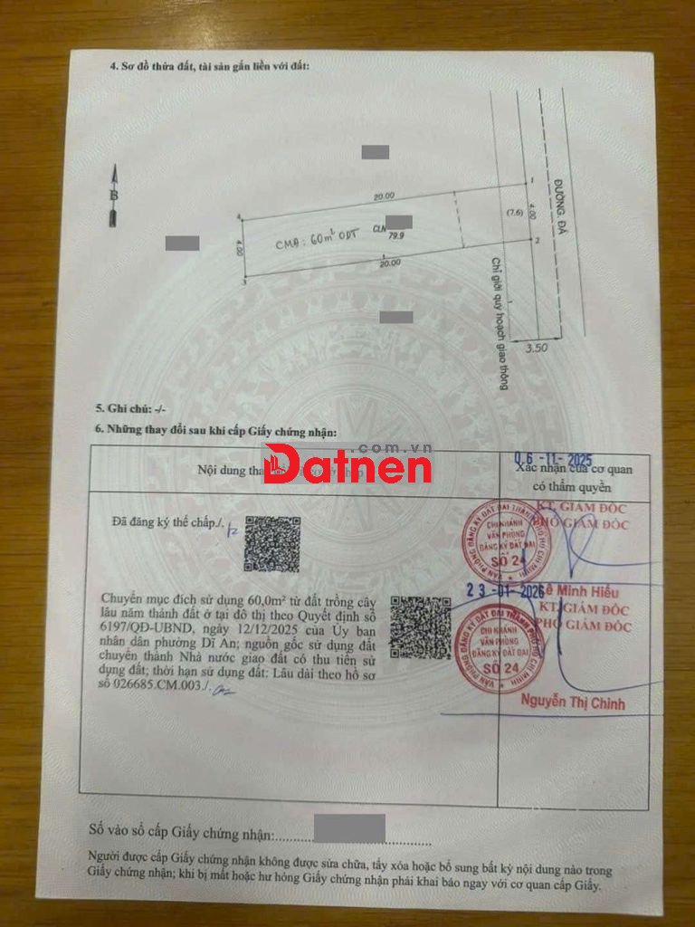 Thổ cư 60m2. Sổ hồng riêng.
