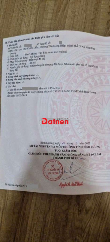 Đất Phúc Đạt phường Tân Đông Hiệp Tp Dĩ An