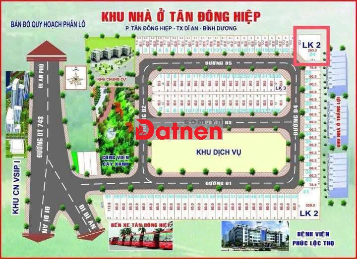 VỊ TRÍ: Khu phố Chiêu Liêu, phường Tân Đông Hiệp, TP. Dĩ An, Bình Dương. Thuộc KDC Phúc Đạt (ô 25 – LK2) – khu dân cư hiện hữu, hạ tầng hoàn chỉnh