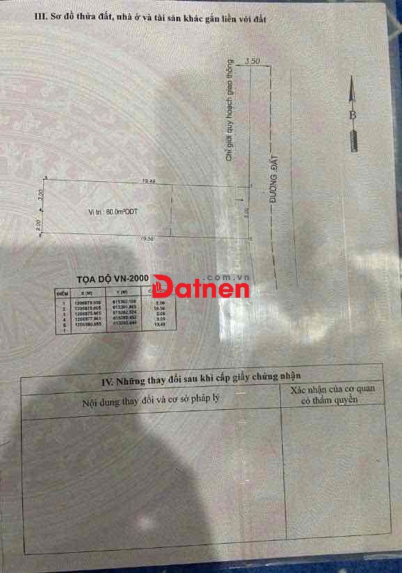 - Diện Tích : 100m2 Thổ Cư 60m, ngang 5m. Đường Bê Tông Rộng 5m Y Hình