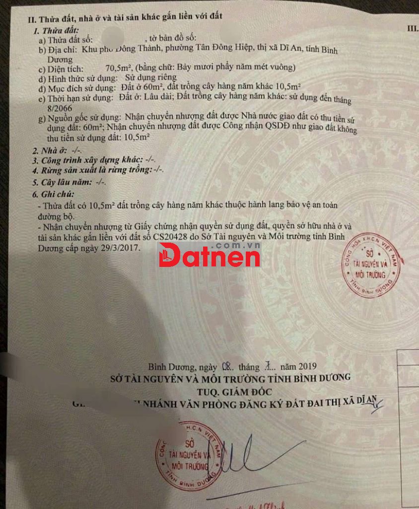 Đất 71m kdc Tứ Hải gần trường cấp 1.2.3 Tân Đông Hiệp C Tp. Dĩ An
