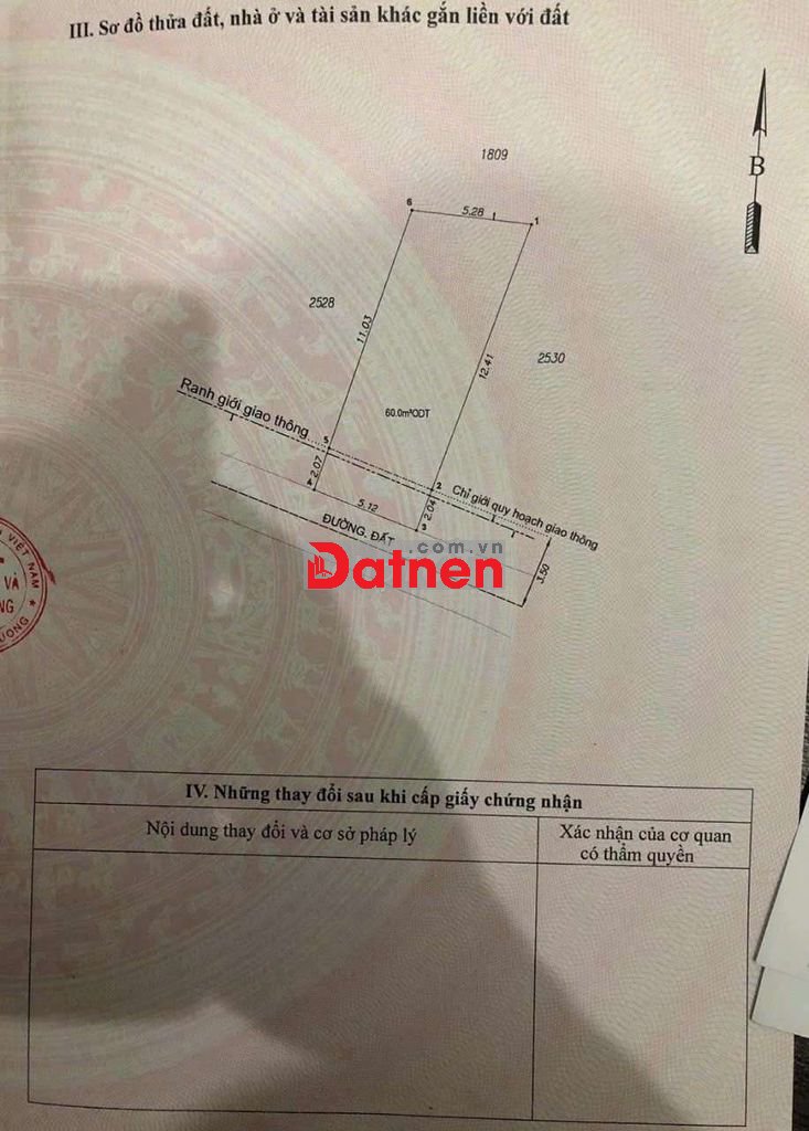 Thổ cư 60m2. Sổ hồng riêng.
