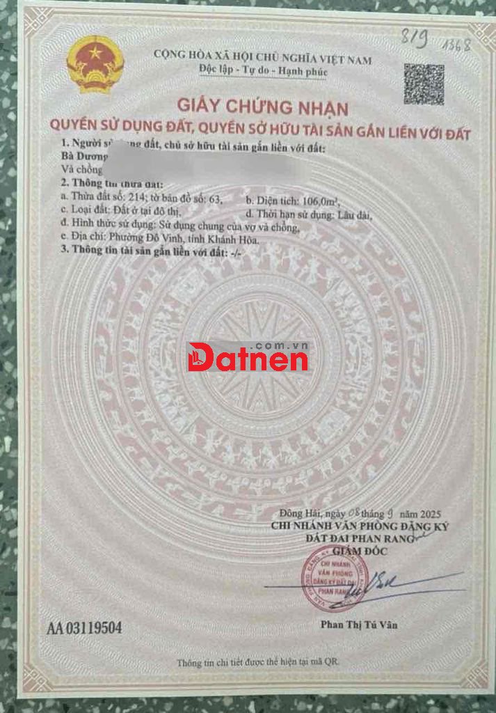 Cần bán lô TĐC minh mạng tỉnh khánh hòa