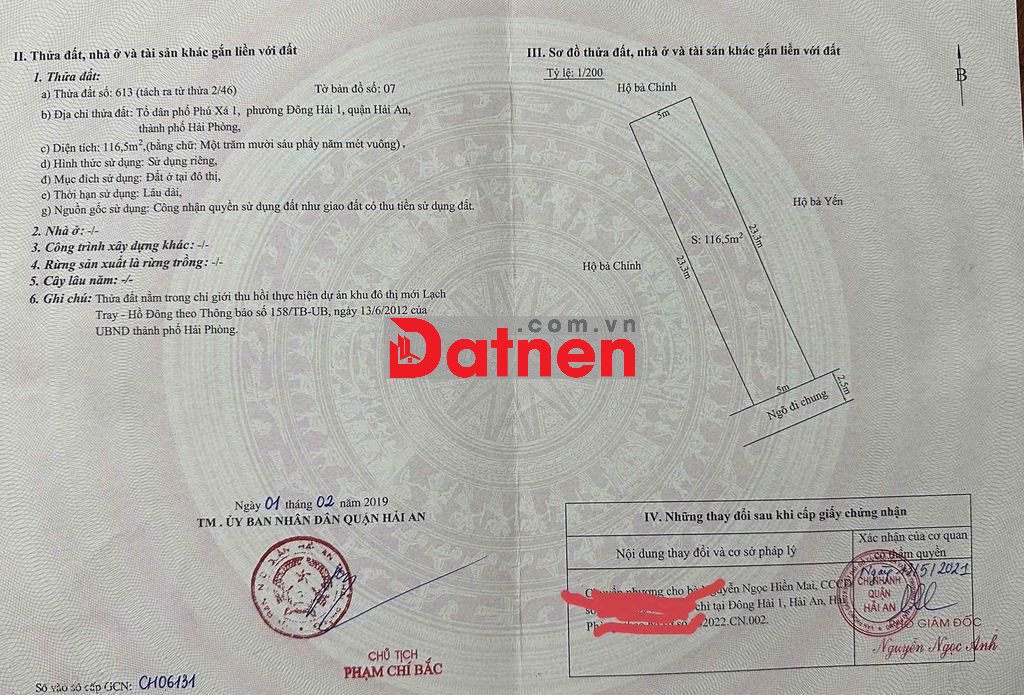 Cần bán lô đất 116m2 ngang 5m dài 23,2m, ngõ 2,5m tại Phú Xá 1, phường Đông Hải 1, Hải An