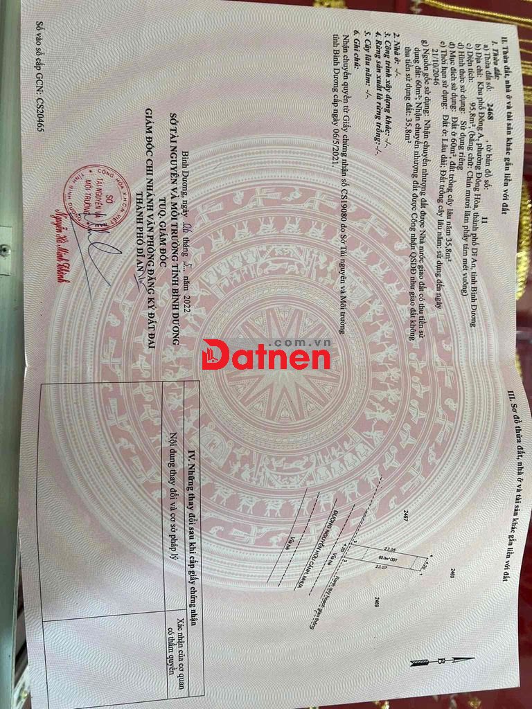- Đất có 148,5m2 thổ cư .