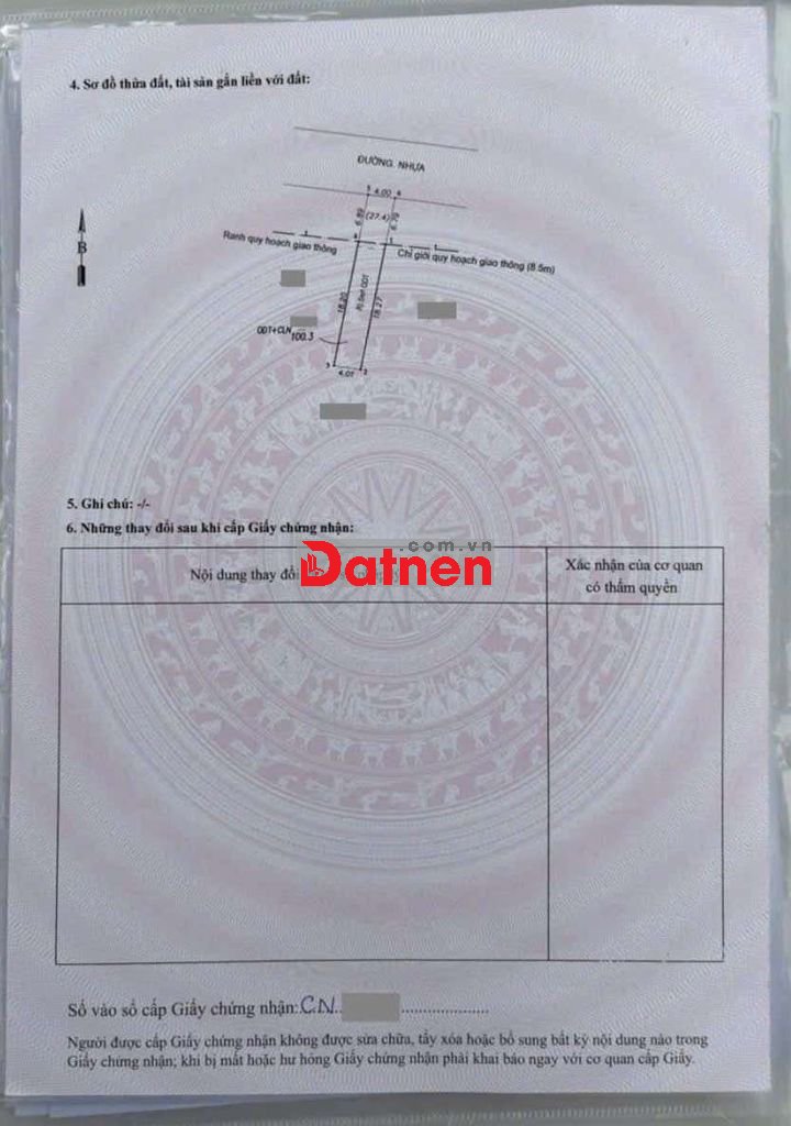 Đất 4.45 tỷ TL- 100,3m2 (4x25m)