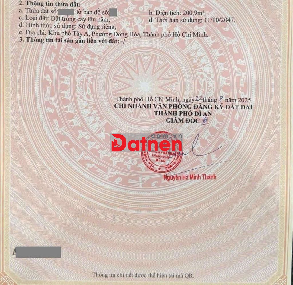 Đất 6 tỷ TL- 200.9m2 (ngang 7,5m).