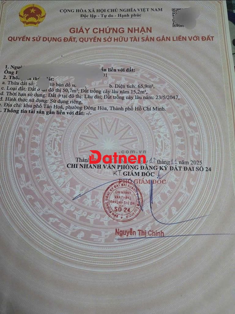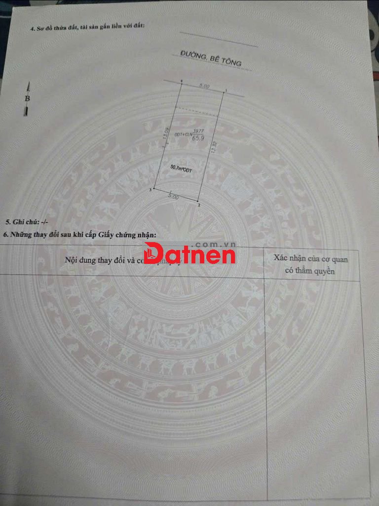 Thổ cư 50,7m2. Sổ hồng riêng.