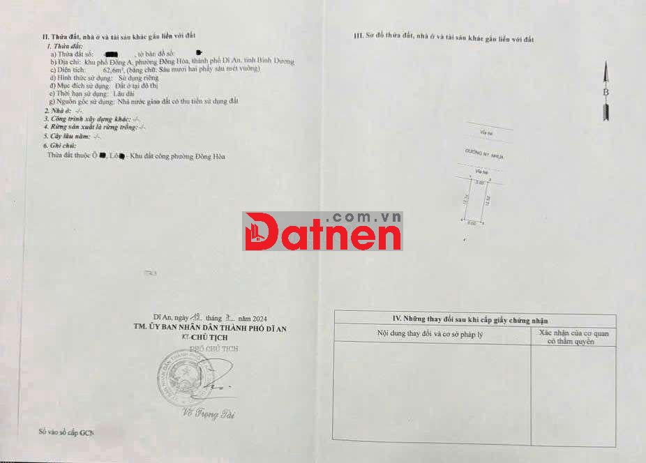 Đất 6.2 tỷ TL- 62,6m2 (ngang 5m)