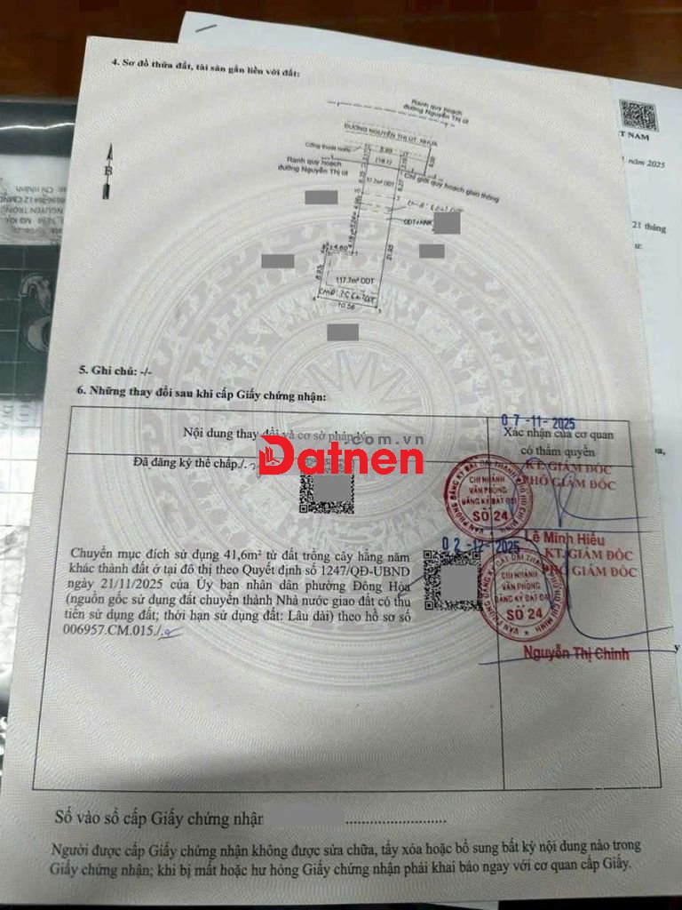 Thổ cư 197m2. Sổ hồng riêng.