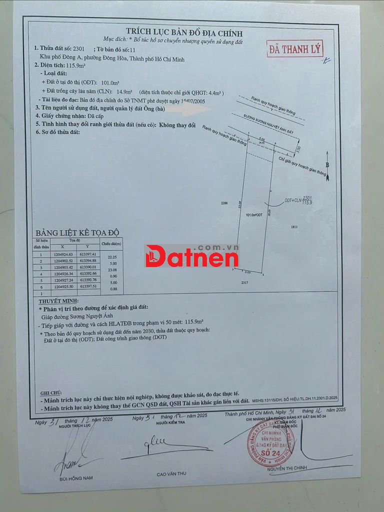 Diện tích 116m² (ngang 5m) thổ cư 101m².