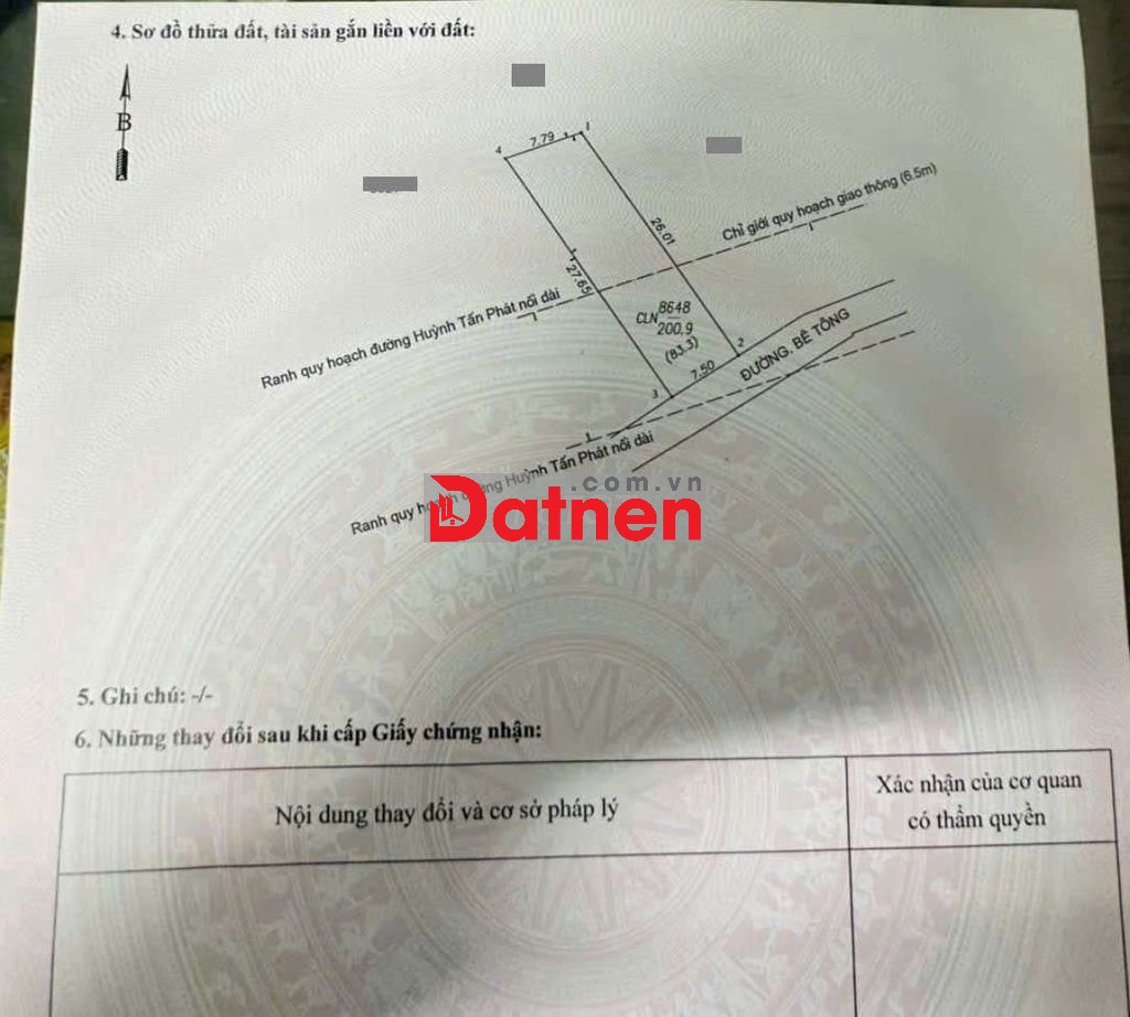 Đất 6 tỷ TL- 200.9m2 (ngang 7,5m).