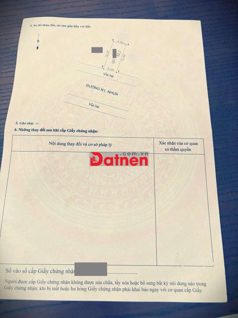 Đất 6,2 tỷ TL- 62,2m2 (ngang 5m)